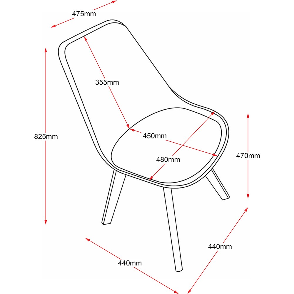 • Chair Dimensions: 440W x 440D x 825mmH. Seat Height 470mm.