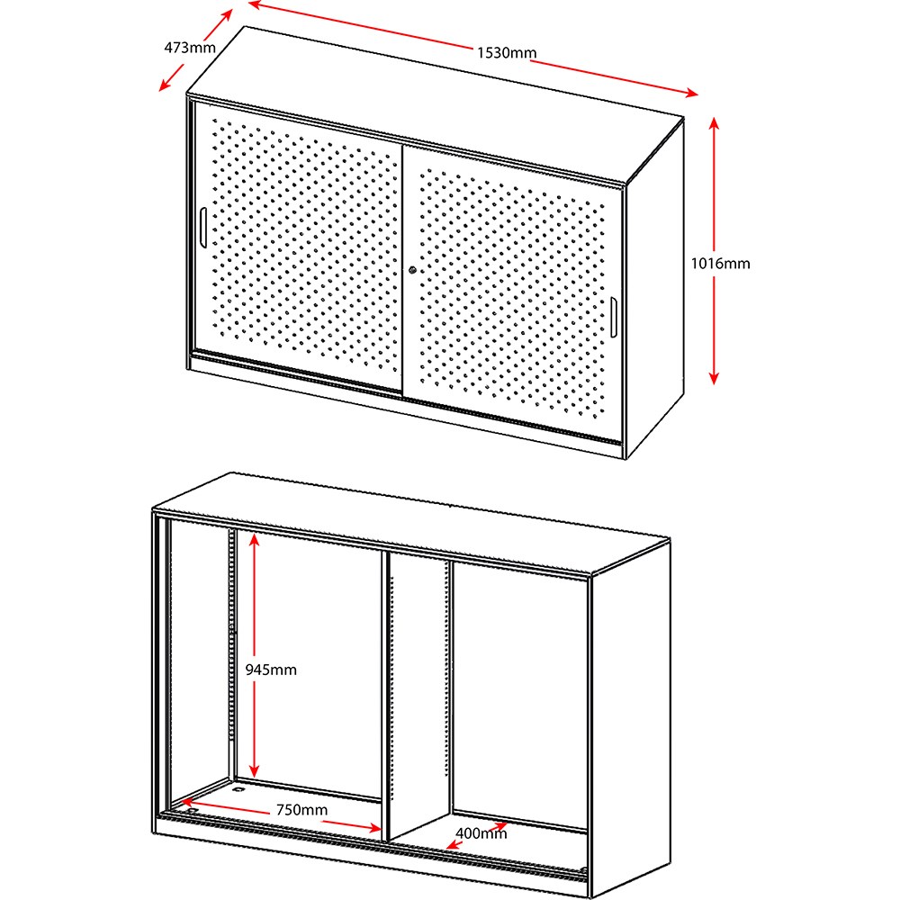 • Perforated door feature with internal acoustic panel for sound absorption.