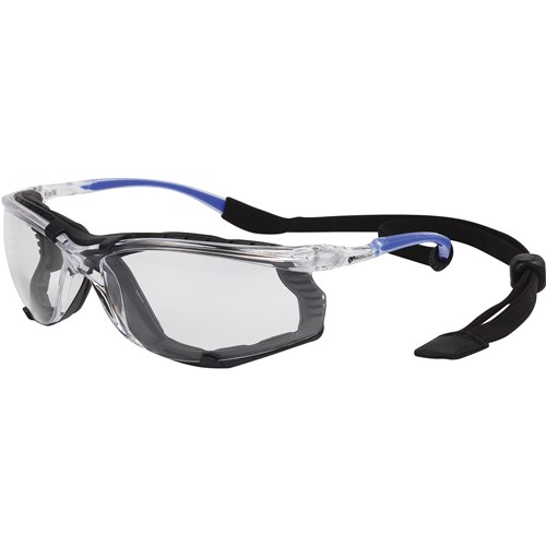 Rubberised temple grips and toggle adjustable head straps provide secure fit.