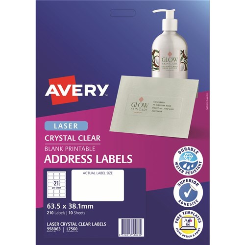 Avery Crystal Clear Laser Address Labels 63.5x38.1mm 21UP 210 Labels 10 Sheets