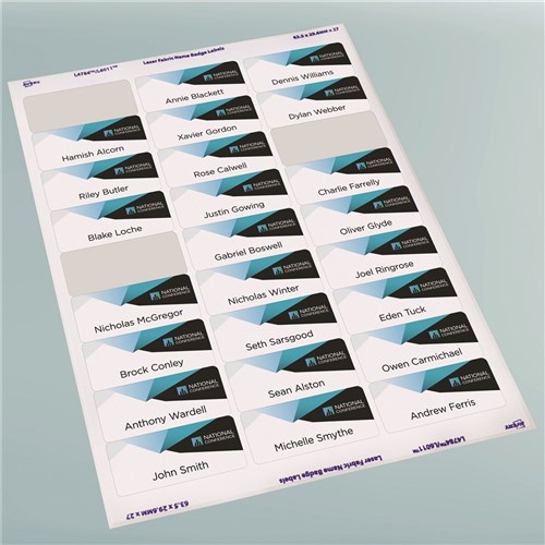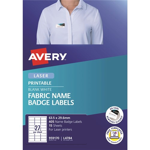 Avery Fabric Name Badge Laser Labels White L4784 63.5x29.6mm 27UP 405 Labels 15 Sheets