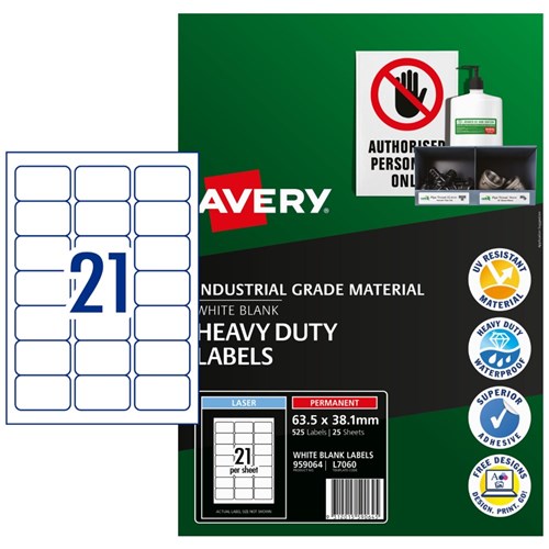 Avery Identification Laser Heavy Duty White L7060 63.5x38.1mm 21UP 25 Labels