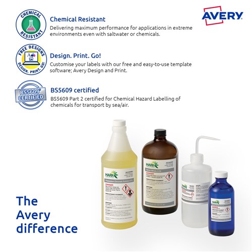 Avery Ultra-Resistant Chemical Grade Laser Labels L7912 63.5x 33.9mm White Pack of 10 (240)