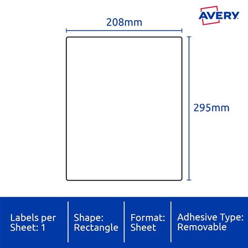 Avery Identification Removable Heavy Duty Laser White L4775 208x295mm 1UP 20 Labels