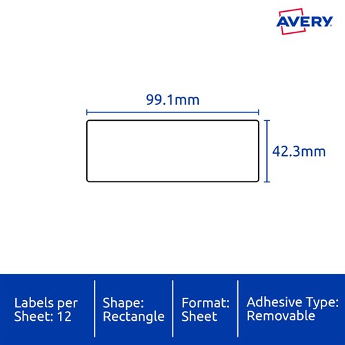 Avery Identification Removable Heavy Duty Laser White L4776 99.1x42.3mm 12UP 240 Labels