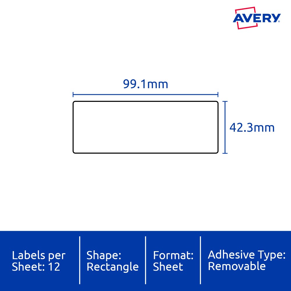 Size: 99.1x42.3mm 240 labels, 20 sheets. 12 labels per sheet (12UP).