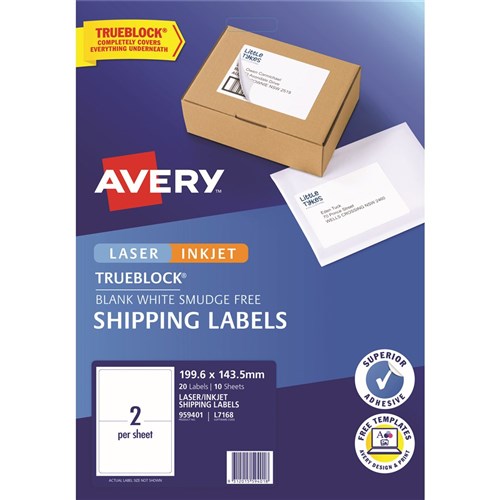Avery Internet Shipping Laser & Inkjet Labels White L7168 199.6x143.5mm 2UP 20 Labels