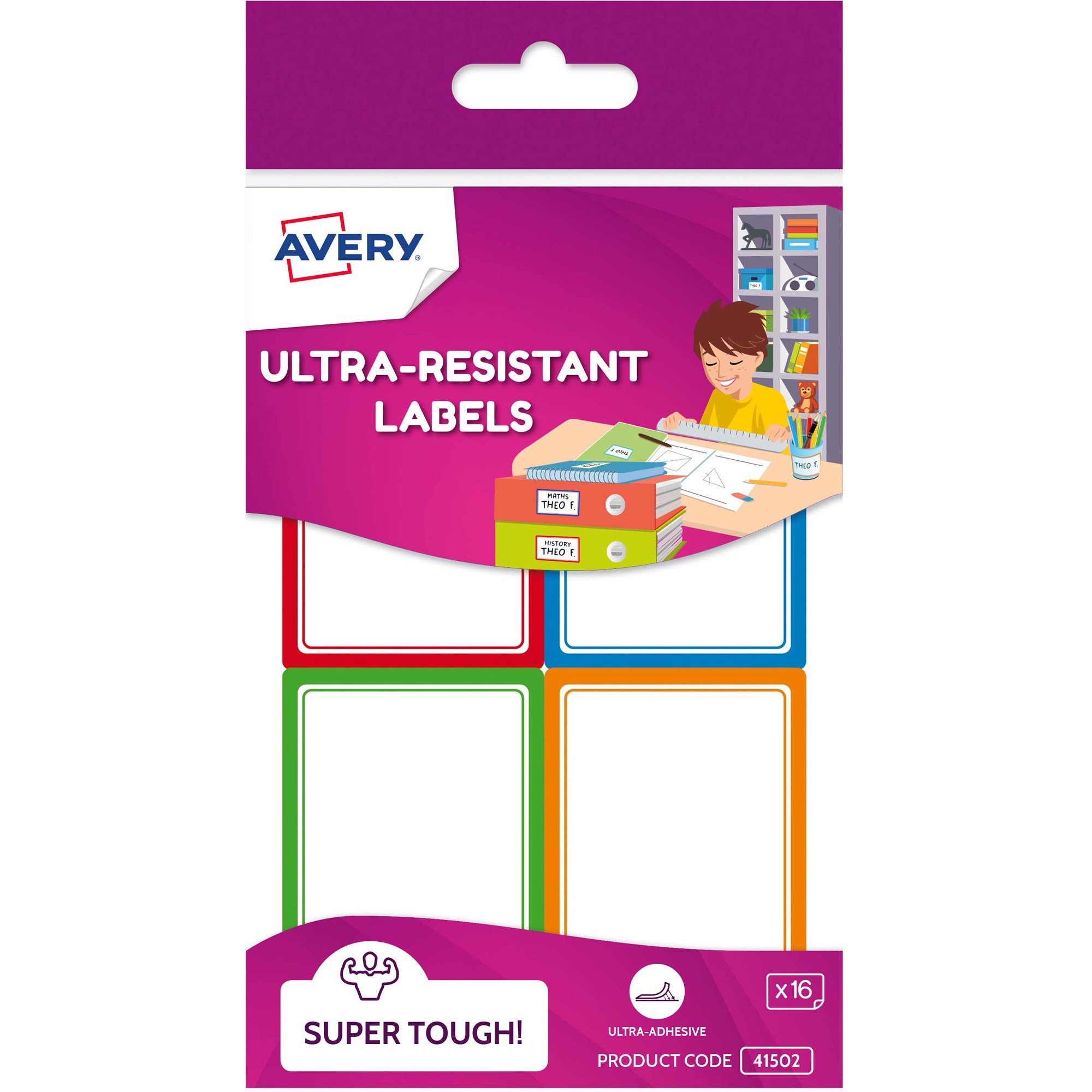 Avery Kids Ultra-Resistant 64x44mm Assorted Colours 16 Labels
