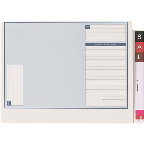 Feature printed panels on the covers to enable notes and related file information to be noted directly onto the file.