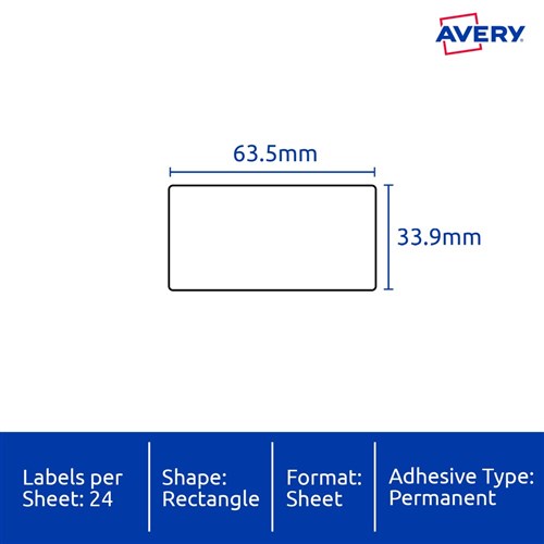 Size: 63.5x33.9mm 240 labels, 10 sheets. 24 labels per sheet (24UP).