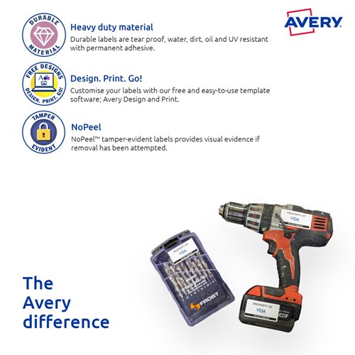 Customise your labels with Avery Design and Print, available at averyproducts.com.au/print.