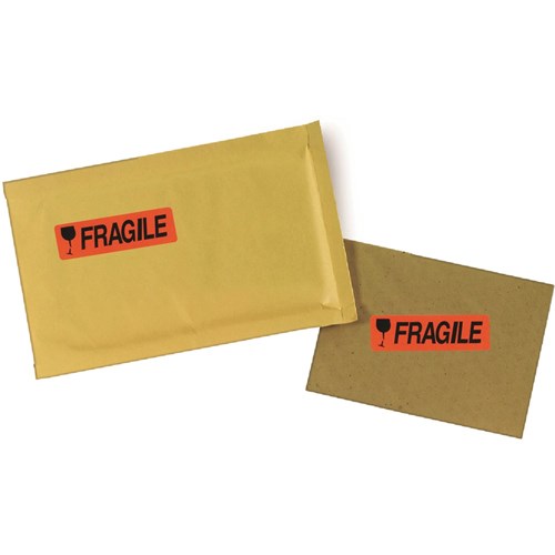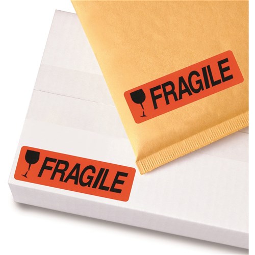 Avery Removable Dispenser Labels 19x64mm Fragile Black On Fluoro Red Pack Of 125