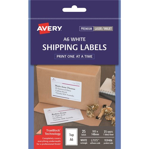 Avery Shipping Laser Labels White L7175 A6 105x148mm 1UP 25 Labels 25 Sheets