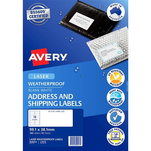 Avery Weatherproof Address & Shipping Laser White L7073 99.1x38.1mm 14UP 140 Labels