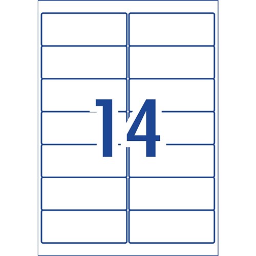 Size: 99.1x38.1mm 140 labels, 10 sheets. 14 labels per sheet (14UP).