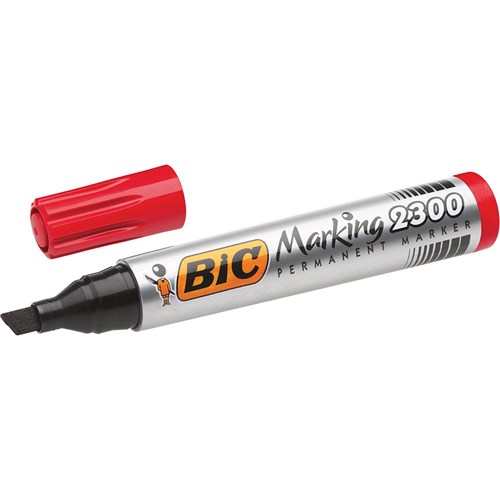 Bic 2300 Marking Permanent Markers Chisel 3.7-5.5mm Red Pack of 12