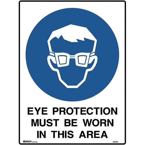 Brady Mandatory Sign Eye Protection Must Be Worn 450W x 600mmH Poly White/Blue