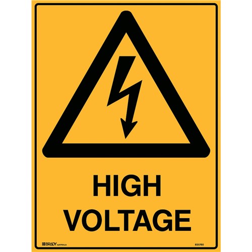 Brady Warning Sign High Voltage 450W x 600mmH Metal Yellow And Black
