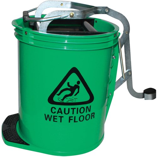 Cleanlink Heavy Duty Plastic Mop Bucket Metal Wringer 16 Litres Green