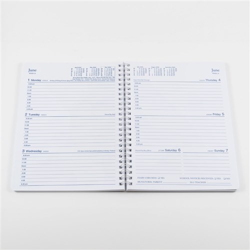 The range is available as an A5 Week to View Student Diary (spiral or perfect bound) and practical A4 and A5 wire weekly notebook.