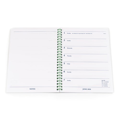 This Colplan planner offers reliable and easy-to-use format in a practical A5 wire weekly notebook.