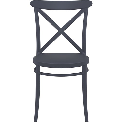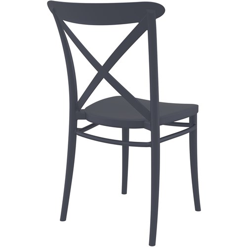 Cross Back Hospitality Dining Chair Indoor Outdoor Use Stackable Poly Anthracite