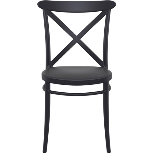 Cross Back Hospitality Dining Chair Indoor Outdoor Use Stackable Polypropylene Black