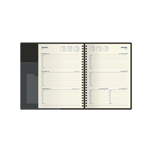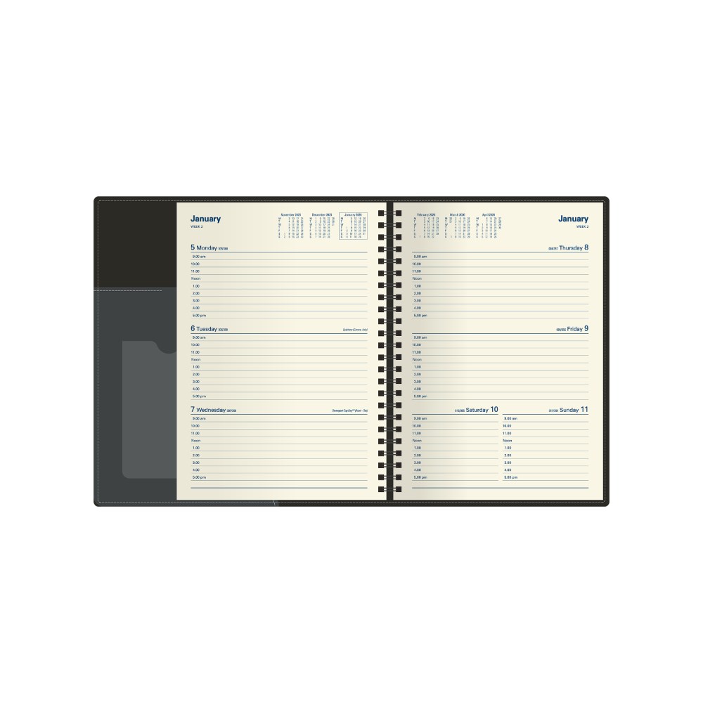 Soft-touch padded cover. Lay flat wiro binding with ribbon marker.