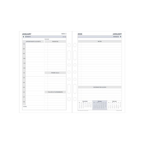 Debden Dayplanner Refill Desk 140 x 216mm Dated Week To View
