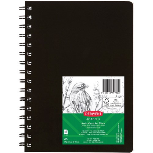 Derwent Academy Visual Art Diary A5 120 Page Portrait Black