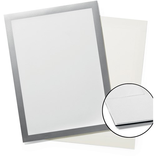Quick insertion and exchange of documents via a fold-back magnetic frame.