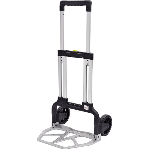 Easy to collapse handle and wheels to make storing easier Folded Size: (L) 500Mm X (W) 60Mm (H) 730Mm Expanded Size: (L) 450Mm X (W) 500Mm (H) 990Mm Weight Capacity: 125Kg