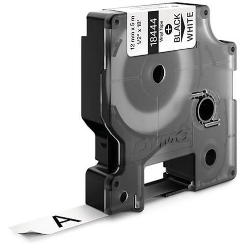 Dymo 18444 Rhino Industrial Labels 12mmx5.5m Vinyl Black on White