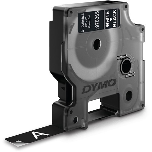 DYMO D1 Durable Industrial Tape Labels 12mm x 5.5m Black On White