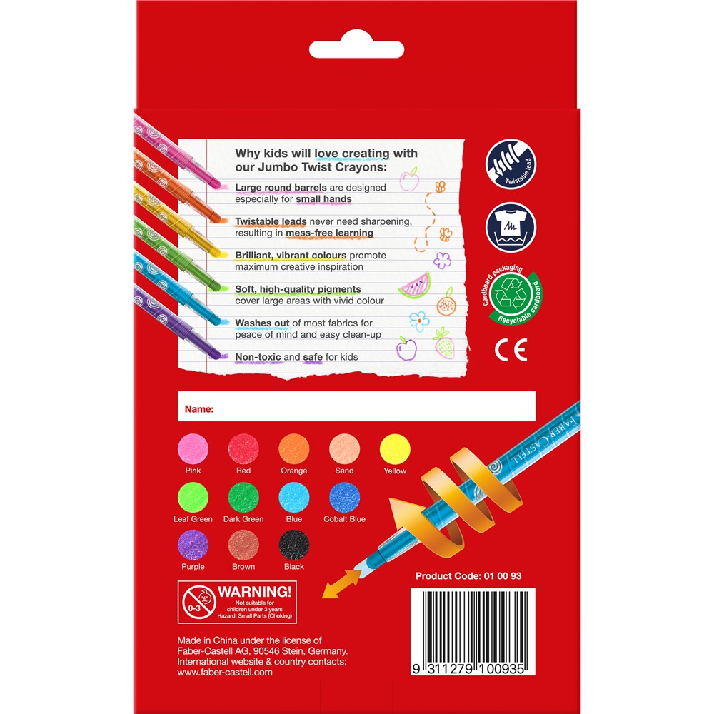 Faber-Castell Jumbo Twist Crayons Assorted Pack of 12