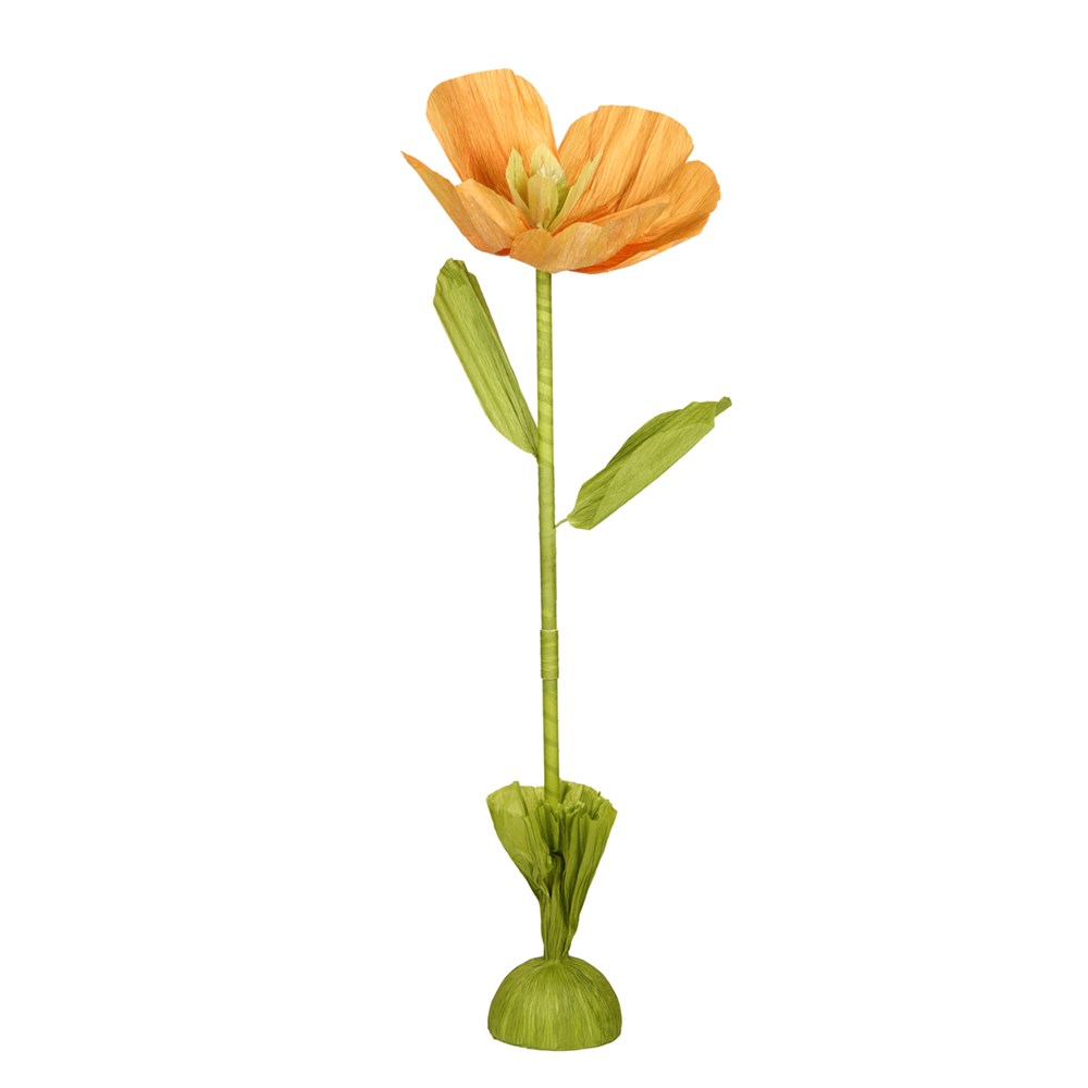 Striking faux 130 cm standing orange poppy that adds colour and height to interiors..