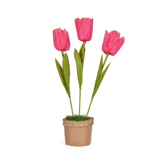 Elegant artificial tango tulip pot hot pink with lifelike fabric petals..