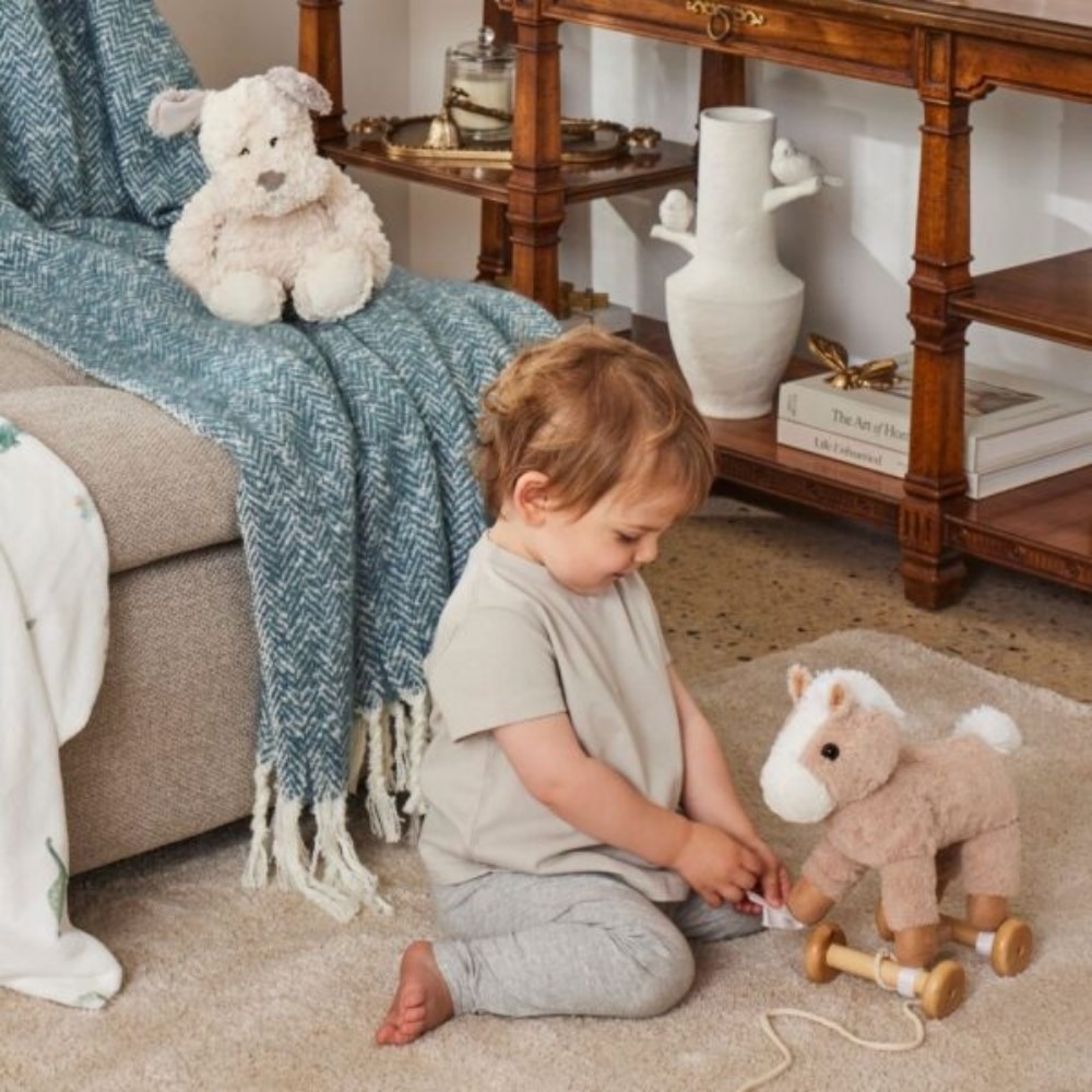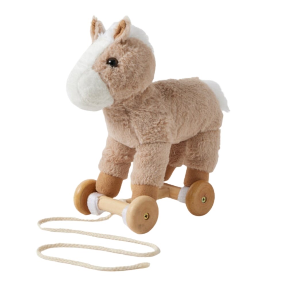 Featuring a luxurious plush finish and removable wheels, this pull-along can also double as a huggable friend.