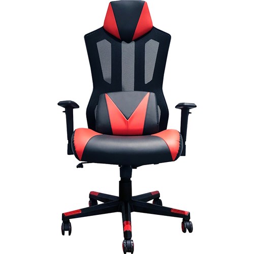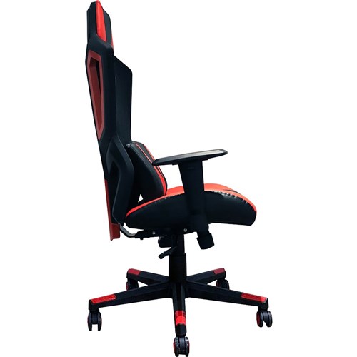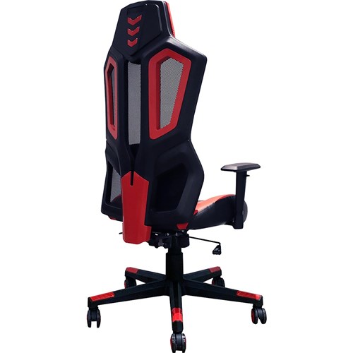 Loose Back Cussion for Lumbar Support and Adjustable Arm Rests with Rectangular Arm Pads.