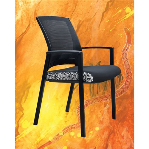 • A unique commercial fabrics designed by Nelly Patterson (Indigenous Artist) combined with K2 Black Fabric to upholster the chair.