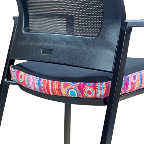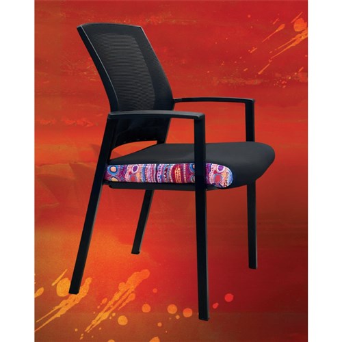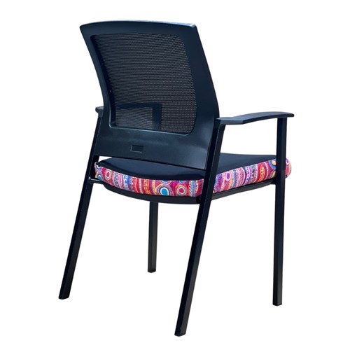 A unique commercial fabrics designed by Murdie Nampijinpa Morris (Indigenous Artist) combined with K2 Black Fabric to upholster the chair.