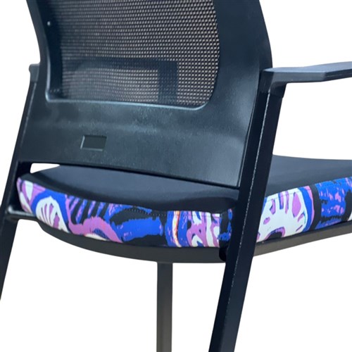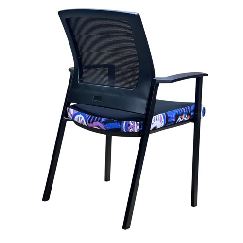 A unique commercial fabrics designed by Murdie Nampijinpa Morris (Indigenous Artist) combined with K2 Black Fabric to upholster the chair.