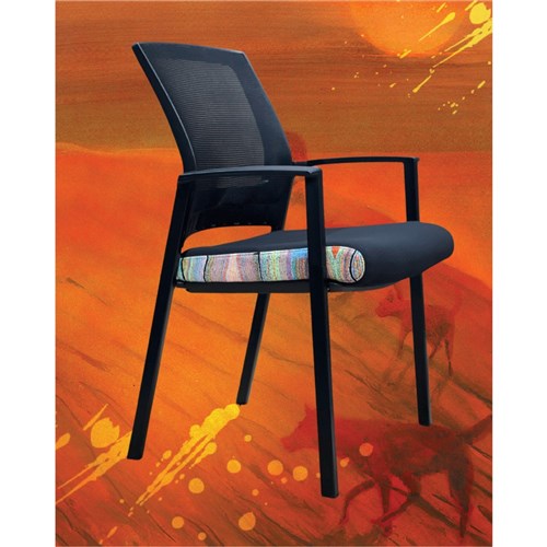 A unique commercial fabrics designed by Liddy Napanangka Walker (Indigenous Artist) combined with K2 Black Fabric to upholster the chair.