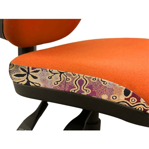 A unique commercial fabrics designed by Paddy Stewart (Indigenous artist) combined with K2 Golden Orange Fabric to upholster the chair.