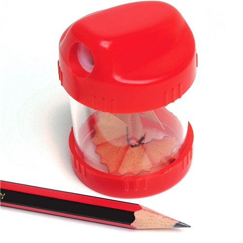 Easy sharpening without the mess. Container captures shavings.