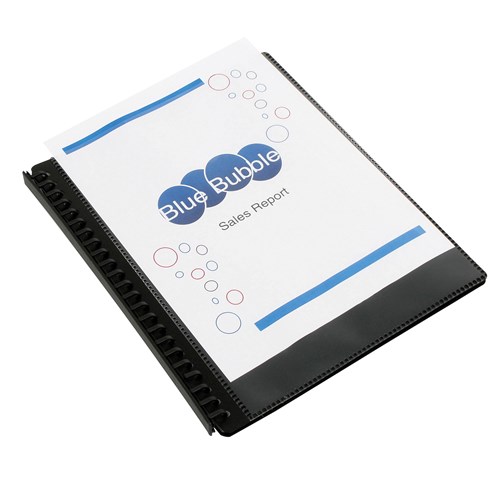 Marbig Display Book A4 Refillable 20 Pocket With Insert Front Cover Black