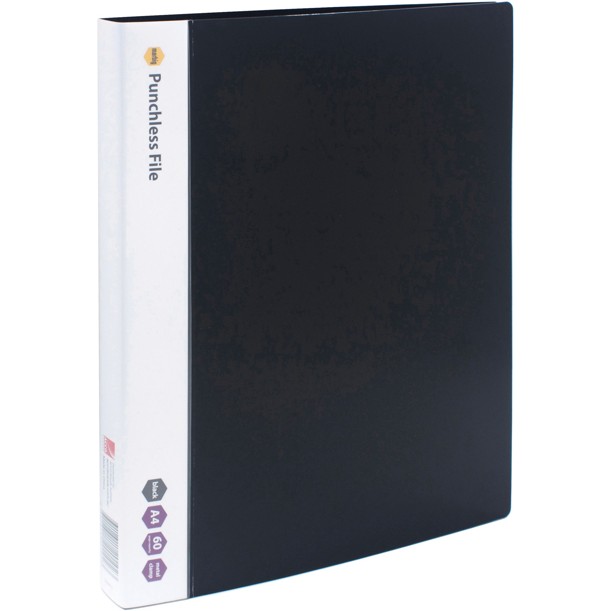 Marbig Punchless File A4 Solid Front 60 Sheet Capacity Black