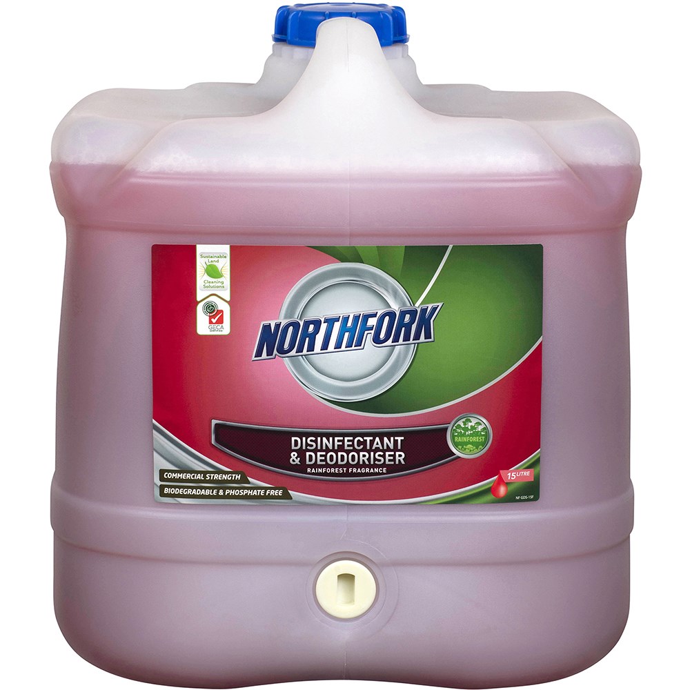 • Northfork Rainforest Disinfectant and Deodoriser is a one step cleaner, disinfectant and deodoriser in one, making it effective for use in washrooms..