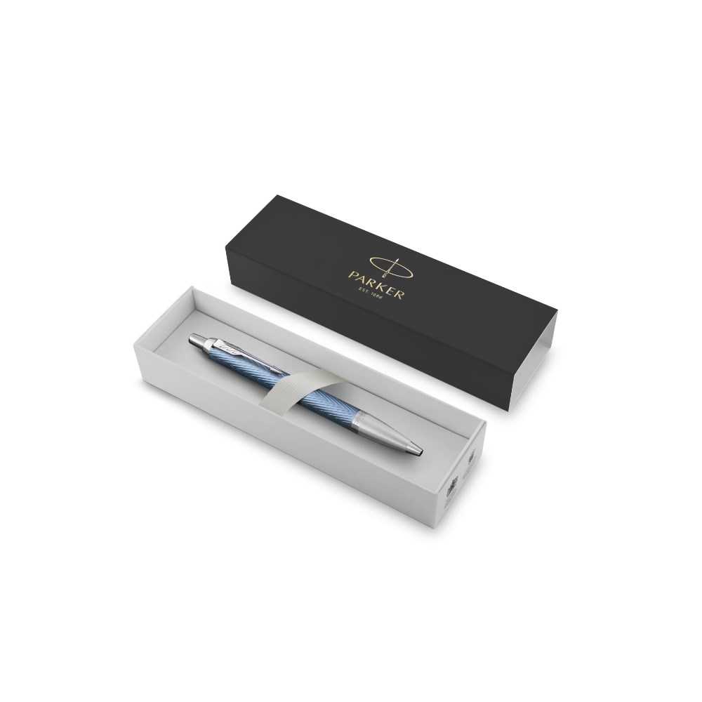 Parker IM Premium Ballpoint Pen Blue Grey Chrome Trim Blue Refill
