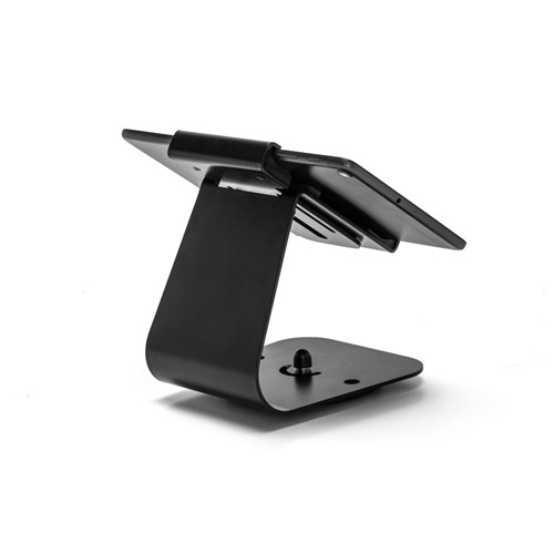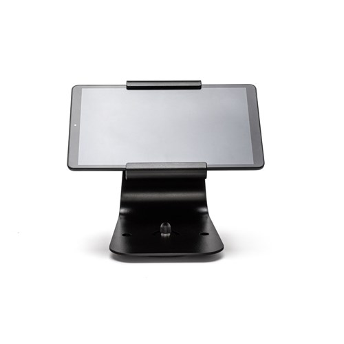 The 180 degree swivel base allows you to rotate it without needing to lift or remove the tablet from the stand.